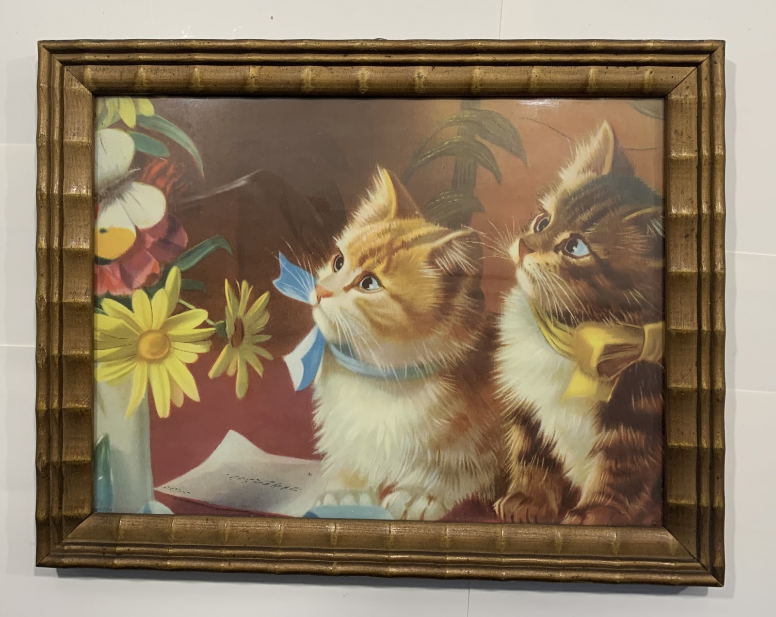 Äldre tavla Katter 26 x 20 cm. Tryck..